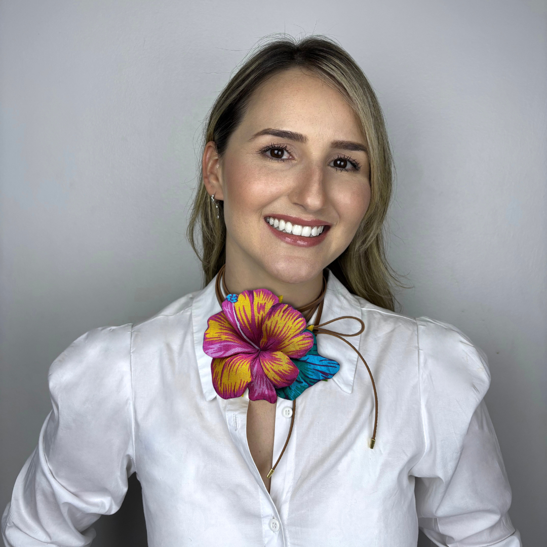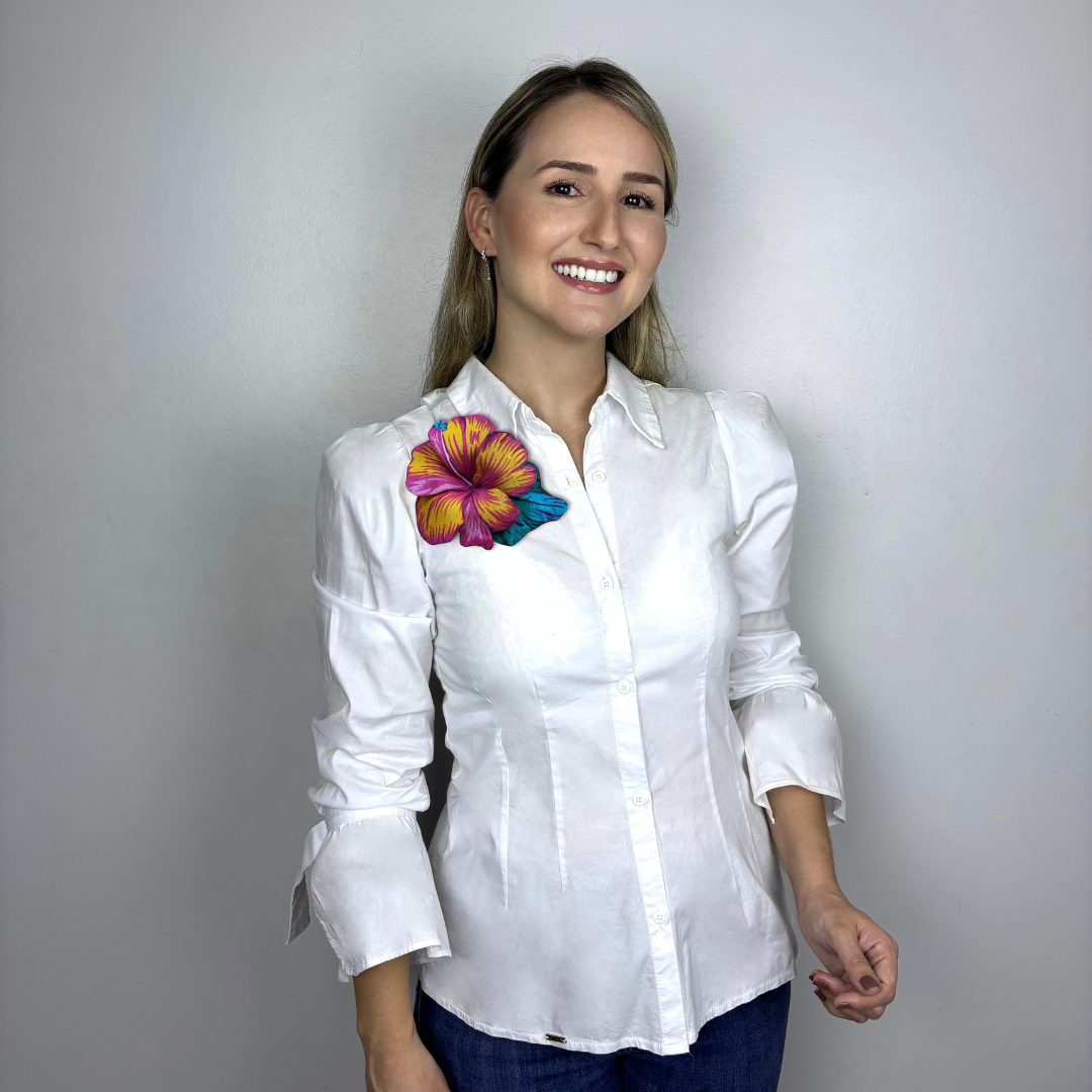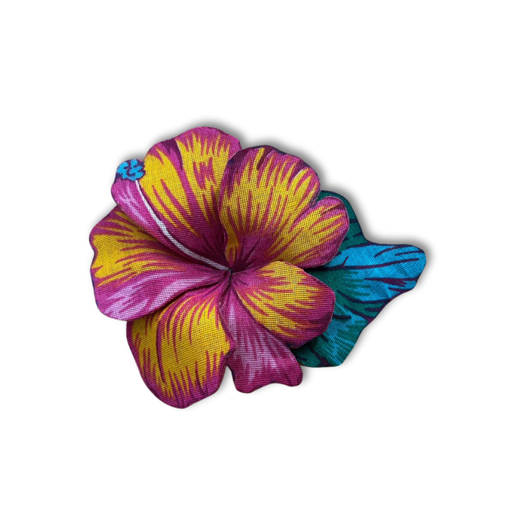 Hibisco rosa c/folhagem azul – Flor de Chita 3D